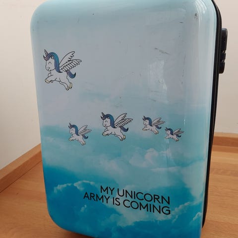 Koffert med avtakbar hjulene. Brukt 1 gang.