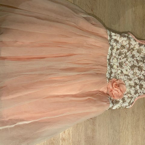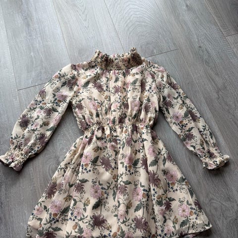 Nydelig kjole i strl 110 me gulldetaljer og blomster