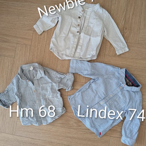 To skjorter selges samlet, lite brukt og framstår som nye.