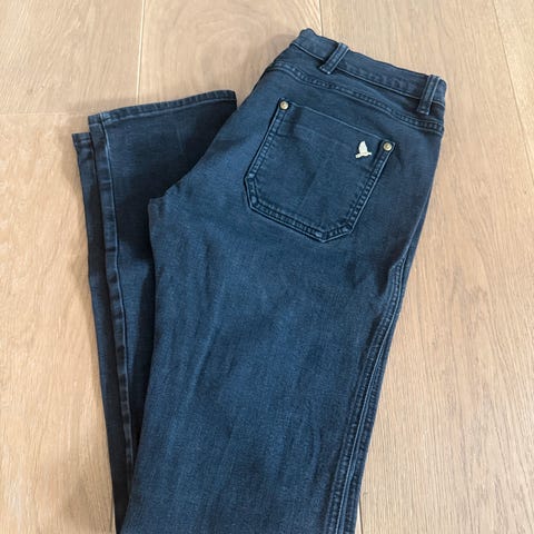 Selger et par pent brukte MiH JEANS Paris i str. 30. Klassisk mørkeblå jeans med mid waist, cropped lengde og slim leg. Flatterende og elegant modell i svært god kvalitet.