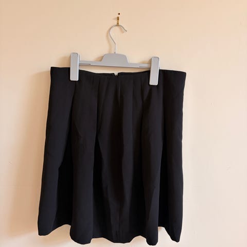Miniskjørt i fin marineblå farge. Str. S, men kan nok passe en M også da strikken i livet er veldig strechy. Veldig behagelig på, lett stoff som faller fint. Jeg er 166 og det rekker meg til ca mellom midt på låret og kneet, litt avhengig av hvor høyt du vil ha det i livet.