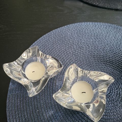 4 lysholdere selges samlet til oppgitt pris. Kan brukes på begge sider, til både stearinlys og t-lys. To små hakk i den ene, se bilde. Design K Hagberg og M Hagberg.