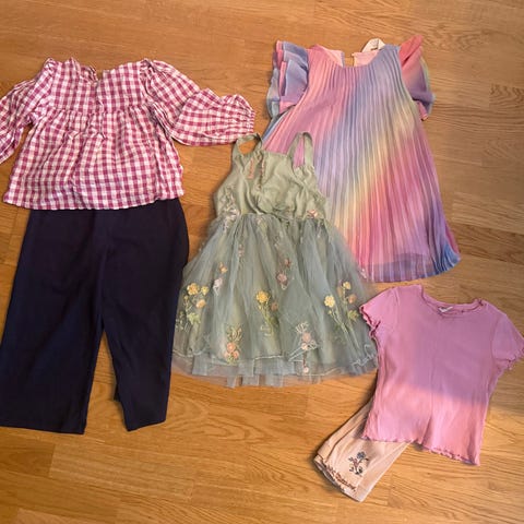 Det meste er lite brukt bortsett fra blårutete skjørt det har noen nupper men som helt sikkert kan fjernes. Pysjbukse på siste bilde fåes med gratis da jeg ikke finner toppen. Kan slenge med om den dukker opp. Blå bunse helt ubrukt og med lapper på. Merker som Zara, kappahl, cubus, hm og lindex.
