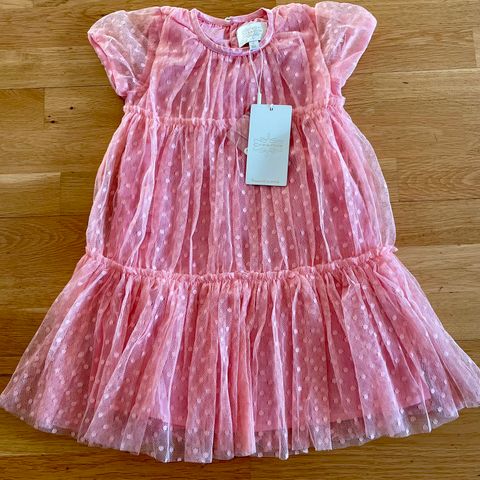 En vakker kjole laget av to lag stoff: bomull nederst og tynt nettingstoff øverst.