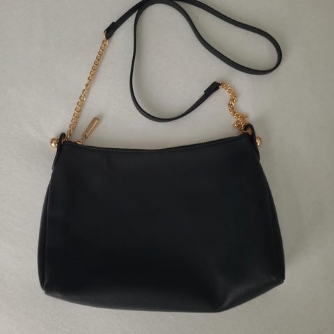 Pen liten veske fra H&M i sort kunstskinn med gulldetaljer. I perfekt stand - aldri brukt (men lappen er klippet av.)