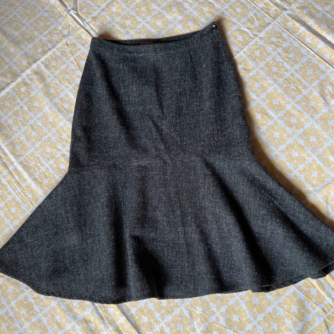 Enkelt og greit knesidt skjørt i grålilla farge.