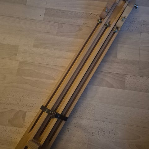 Staffeli i tre, ca 30 cm høyde. 50 kr + 69 kr i frakt
