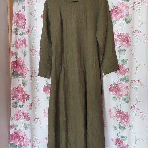 Helt ny, nydelig kjole fra NPL i modellen Montmarte. Fargen ser gulere ut enn den er på bildet- sjekk ut Juniper Green på NPLs sider for å se på fargen. Tok sjansen på M i denne(er mellom M og M/L), men den ble for trang i ermhullene. Jeg bestilte kjolen med følgende endringer: Lengde på overdel: 45 cm, lengde 120 og knyting bak.