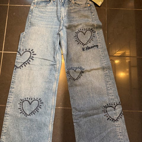 Only bukse str 164. Helt ny med lapp. Super kul lys jeans med strass steiner. Ny pris 559,-