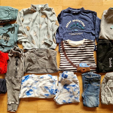 Stor pakke barneklær i str 92, noe 86/92. 9 gensere, 1 hettegensere/jakker, 4 joggebukser, 2 jeans, 1 bukser, 2 strømpebukser, 3 sokker, 3 bodyer, 3 pyjamas, 2 skjorter, 1 vester. Blant genserene og joggebuksene er det 2 joggedresser i velur. Merker blant annet kapahl, lindex, name IT, Polarn o pyret, Tar forbehold om anmerkninger på plaggene. Alt pent brukt eller helt nytt. Fra et røyk og dyrefritt hjem.