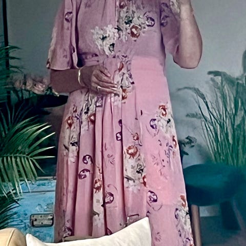 Kjolen perfekt til sesongens fester og bryllup. Den har halvlange ballongermer, halvhøy hals med knyting bak og blomsterprint i delikate farger. Snittlinjen i midjen og plisseringene i front og i ryggen skaper en lett definert silhuett, uten å sitte for tett.