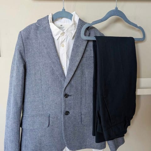 Selger en dress bukse/jakke + sko, buksen er litt slitt på knærne men ikke noen hull. Har en 17mai til i seg.