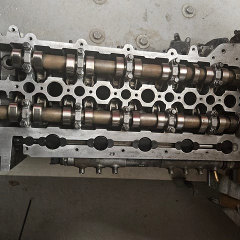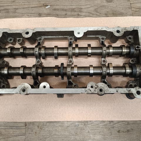 Topplokk tdv6 Landrover høyre og venstre med cam . Helt i orden. Eneste er at en glødeplugg må gjengens på nytt , på en side av topplokkett