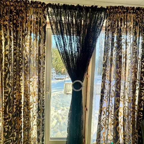 Helt nye trådgardiner, 2 lengder ca 195 cm lengde.