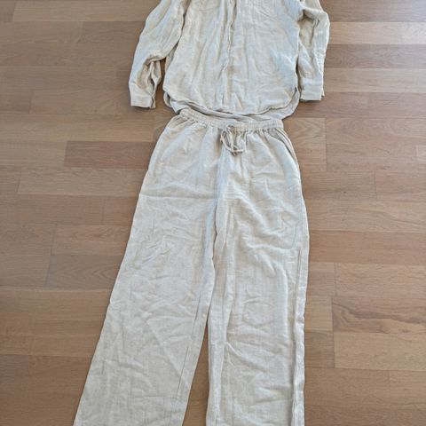 Skjorte er i str M og 100 % lin og bukse i str s. Og linblanding