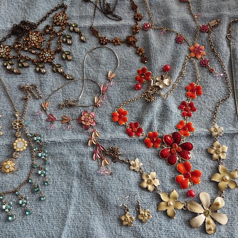 Mange fine halskjeder til å pynte seg til forskjellige anledninger. Selges billig. Pris står under hvert bildet. Kan bli enig om pakke pris. Kan sende som brev post ut fra vekten eller med postnord for 69 med sporing. Det er mye billigere enn med fiks ferdig e