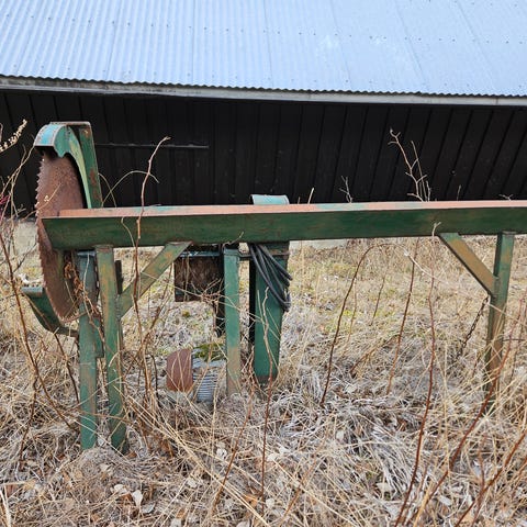 Kappsag i grønt metall med MEZ Mohelnice motor . Denne kappsagen er designet for effektiv kapping av ved. Den er laget av solid metall og har en robust konstruksjon. Motoren er produsert av MEZ Mohelnice, kjent for sin pålitelighet. Egnet for bruk i hage eller gårds miljøer.