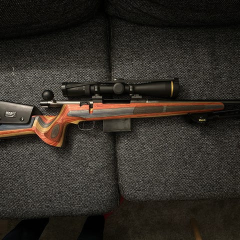 Selger Anschütz Mod 64, cal 22 LR, med justerbar kinnstøtte m/diopter. Selges med følgende tilbehør: 4 korte magasin, armreim, skytestøtte og futteral. Noe ammunisjon følger med ca. 600 skudd.