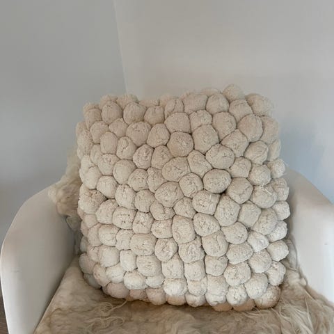 Krem hvit Pom Pom pute fra svenske merke Byon. Puten er ubrukt