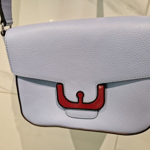 Selger en svært pent brukt Coccinelle-veske i ekte skinn med avtagbar skulderstropp. Den har blitt oppbevart i dustbag, den medfølger. Vesken er i god stand, med unntak av en liten flekk på baksiden (se bilde nr. 3). Alle metallbeslag fungerer som de skal.