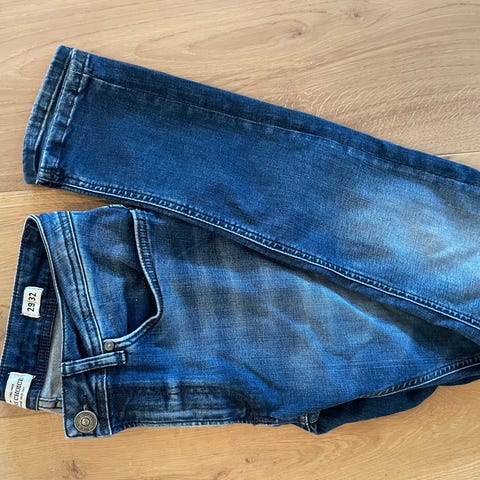 Klespakke; 2 flotte jeans. Tettsittende og elastiske. Str. W30 L32. Se ellers bilder for detaljer. Meget pent brukt, da ungdommen plutselig vokste og de ble for små. Ingen feil, flekker eller mangler.