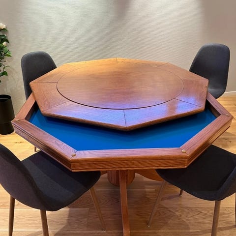 Har også pokerbord med plass til 10 pers (800,-/helg.) Bør bæres av to personer. Eventuelt en lett pokerduk (10 pers) mm ved behov