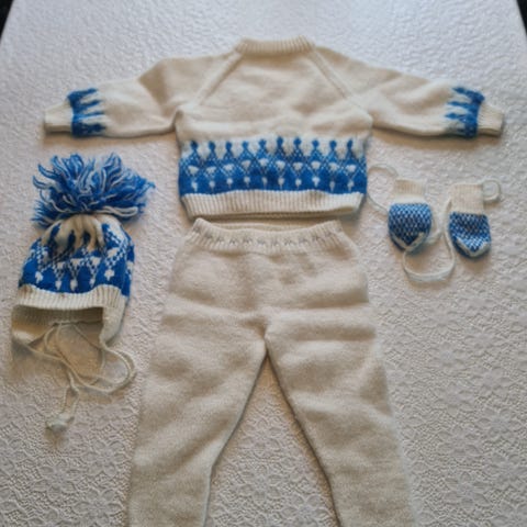 Nydelig hjemmestrikket ullsett til barn str 2 år / 92.