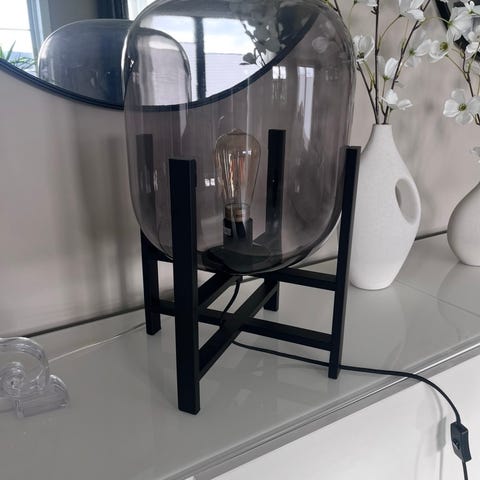 Bordlampen har en glasskuppel med speileffekt som hviler på et dekorativt understell i svart stål. Det stilrene og moderne designet gjør at lampen blir en viktig del av interiøret. Plasser den alene som et stilikon i et kjedelig hjørne eller som en dekorativ lyskilde i gangen.