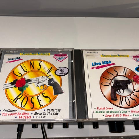 Selger to Guns `n` roses bootlegs for 100kr stk eller 150kr tilsammen. Begge cdene har hairlines men har testet og de spiller uten problemer.