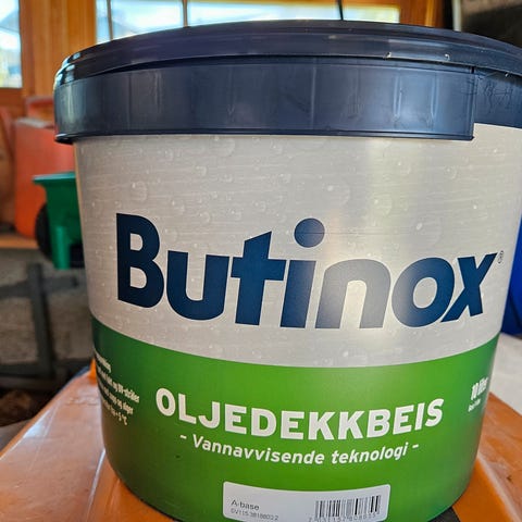 Snart er det tid for å beise terrassen ... Selger et spann med 2,7 liter vannbasert Trebitt beis, farge "Eksotisk tre". Det viste seg at fargen ikke matchet helt på vår terrasse, selger derfor spannet kjøpt i juni 2025. Kun tatt ett strøk på en halv meter på en terrasseplank.