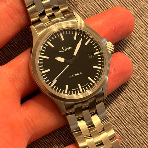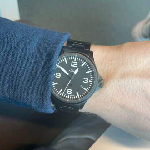Selger min Sinn 104 St Sa A fordi jeg ikke bruker den like mye som jeg en gang gjorde. Er veldig glad i den men syns det er mest fornuftig å selge den sånn at det blir brukt litt mere. Jeg brukte den nesten hver dag for to år. Det kan synes på klokken, men ikke noe uflatterende hvis man er tilfreds med at en klokke er i bunn og grunn en bruk gjenstand.
