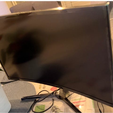 Skjermen er i god stand, brukt hjemme på kontor. Ingen store riper, klart bilde og alle porter fungerer.