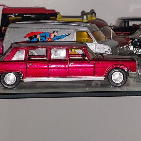 DINKY TOYS, ROLLS ROYCE Phantom V Limousine modellbil fra 60-tallet. Fantastisk fin. Denne detaljerte modellen har åpningsbare dører, panser og koffertlokk. Leveres med originaleske. I god stand i forhold til alder. Høyre speil mangler. Perfekt for samlere og bilentusiaster. Selges 1025kr eller høystbydende. Kan sendes med Postnord 69kr ekstrakostnad.