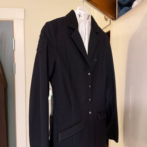 Pent brukt stevnejakke fra CT strl 38 italiensk, men den er sydd inn litt i midjen (hos skredder) for å få den noe mer figurdsydd (se bilde av den på).