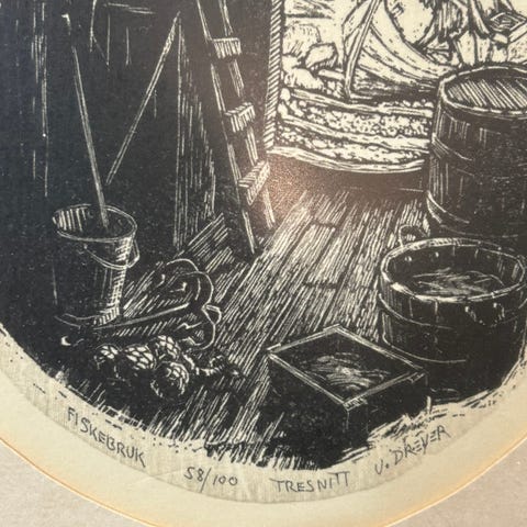 Trudy Wiegand. Dalen. Litografi. Innrammet.