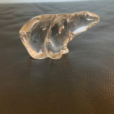 Nydelig liten isbjørn i klart glass fra Hadeland Glassverk selges for kr 150,-.