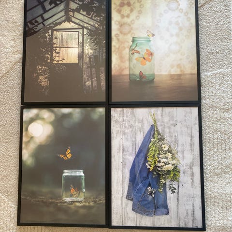 Selger alle bilderammer pga overgang til lysere dekor. Noen av dem er spraymalt svart, noen er originalt svart. Eventuelle merker kan dekkes enkelt med litt spraymaling. Alle uten glass / plast. Selges helst samlet. Postere kan følgene med for en avtalt pris.