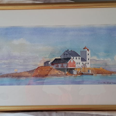 Akrylmaleri - "Rorbuer Reine Lofoten" - Lisbeth Lundgård aug. 2000
