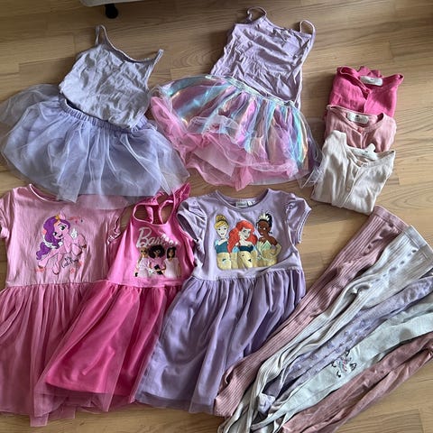 Pent brukte kjoler. Str 98/104 og 104.
