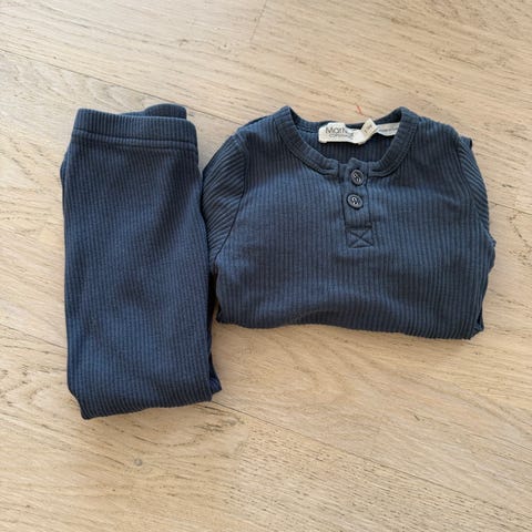 Deilig sommersett med bukse og genser i hundre prosent bomull som er lett og luftig på varme sommerdager, som beskytter huden mot sol. Genialt sett som vi har hatt flere av og som er brukt her fra 2 år til 5 år