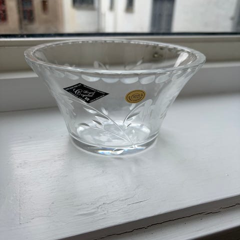 Ekte krystallskål på fot – blomsterdekor, vintage