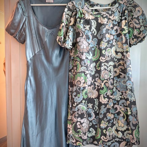 Designkjole fra Sibin Vasiljevic i str. M. Den er smal i midjen og vid nede med strikk. Flott designkjole som er blitt for liten over midjen.
