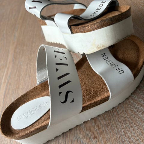 Superfine sandaler/sko fra Steve Madden. Fargen bone. Str. 39, jeg vipper vanligvis mellom 37-38 så disse er litt små i størrelsen vil jeg si☺️ veldig komfortable og har hatt disse i flere farger. De har noen bruksmerker (mest under), tror mye blir borte etter en liten vask!