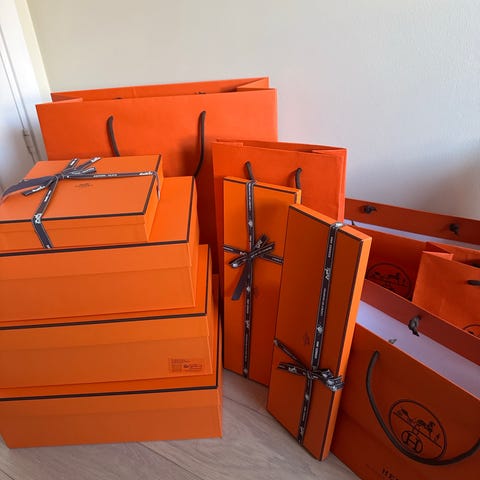 Esker og bokser til div Hermès. Selges uten snøre/bånd.