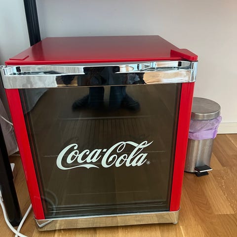 Selger et så å si ubrukt coca cola minikjøleskap.