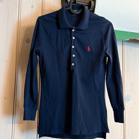 Selger denne poloskjorte i navyblue farge. Ermene er litt kortere enn på bilde. Se siste bilde for farge. Veldig lite brukt.