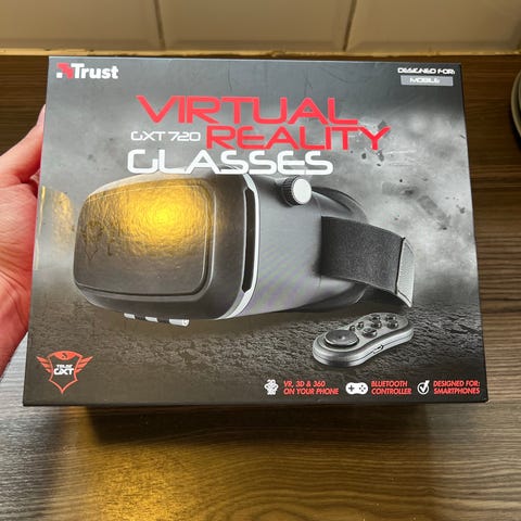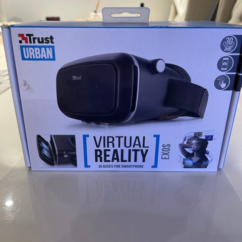VR briller selges med eske. De er aldri brukt og fremstår som helt nye bortsett fra at esken er åpnet.