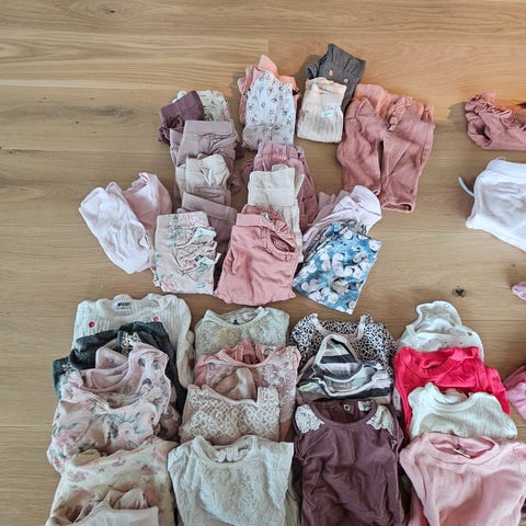 Inneholder mange fine kjoler fra bl.a. Newbie, bodyer, heldress, pyjamas, genser, bukser/tights, jumpsuit, luer, sokker, votter.