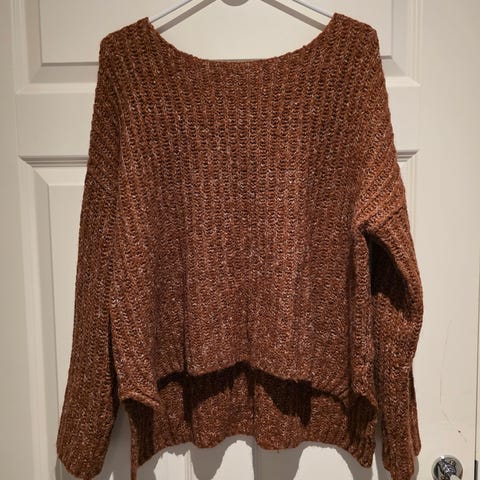 Selger en nydelig blå topp i tykk, strikket kvalitet med lett puff på skuldrene. Brukt kun én gang eller to , fremstår som ny.