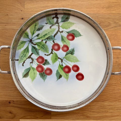 Dekorativ Tallerken Blomstermotiv Rød Grønn vintage retro art deco